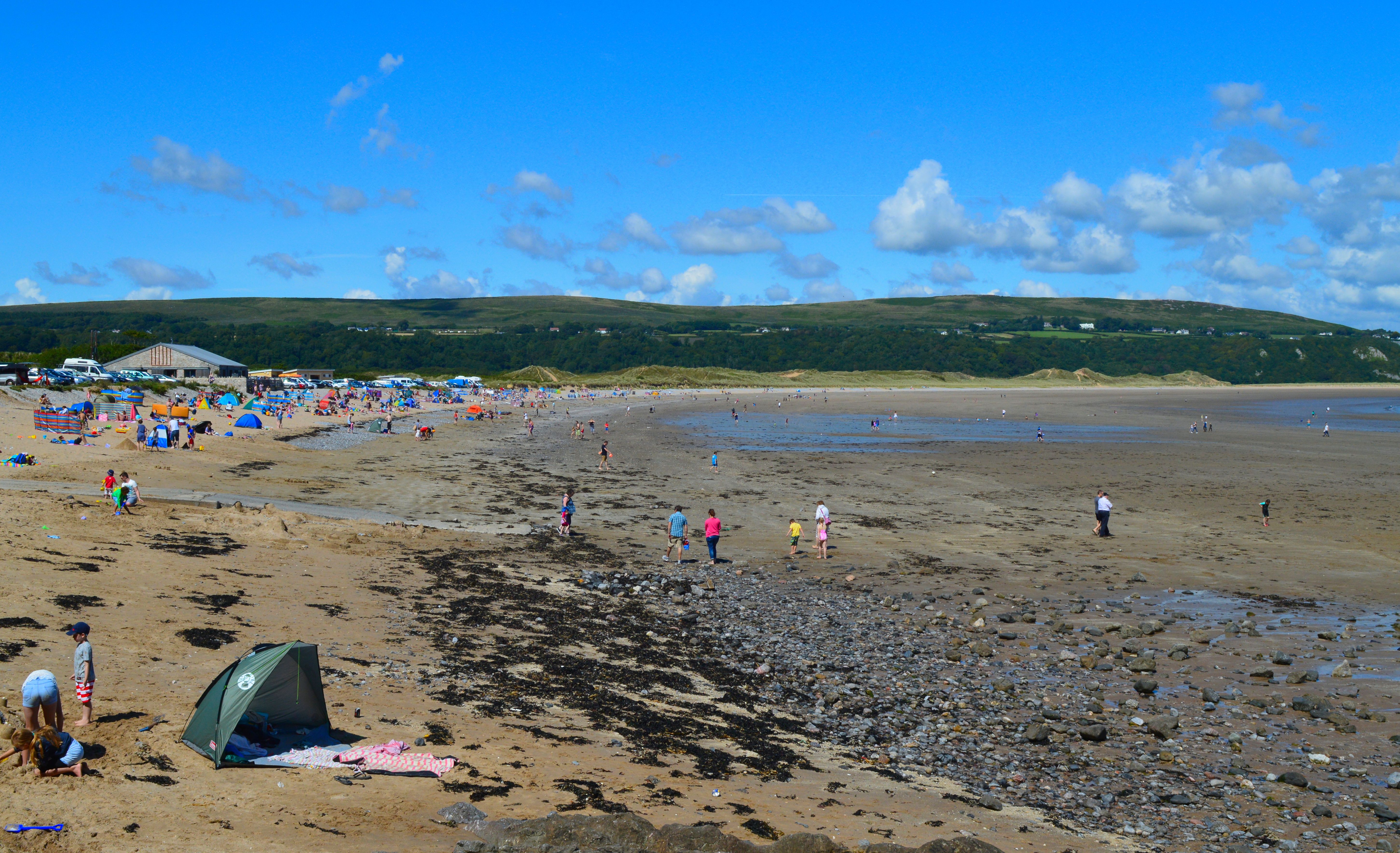 Oxwich Bay is a vast crescent-shaped beach stretching 2.5 miles. Behind it lies the Oxwich National Nature Reserve, home to rare orchids and birds, making it a favourite among biology students. One end of the beach features convenient amenities like a car park and shops, and the other end is much quieter. Oxwich Beach is one of the easiest beaches to reach by private car and public transport. It is also a pet-friendly beach in Swansea, allowing dogs on the beach all year.