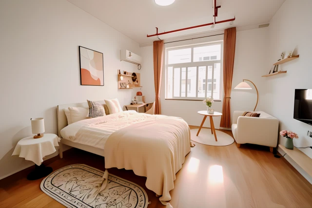 【Room Configuration】 2*1.5m bed, wardrobe, refrigerator, washing machine, air conditioning, independent broadband, separation of wet and dry bathroom